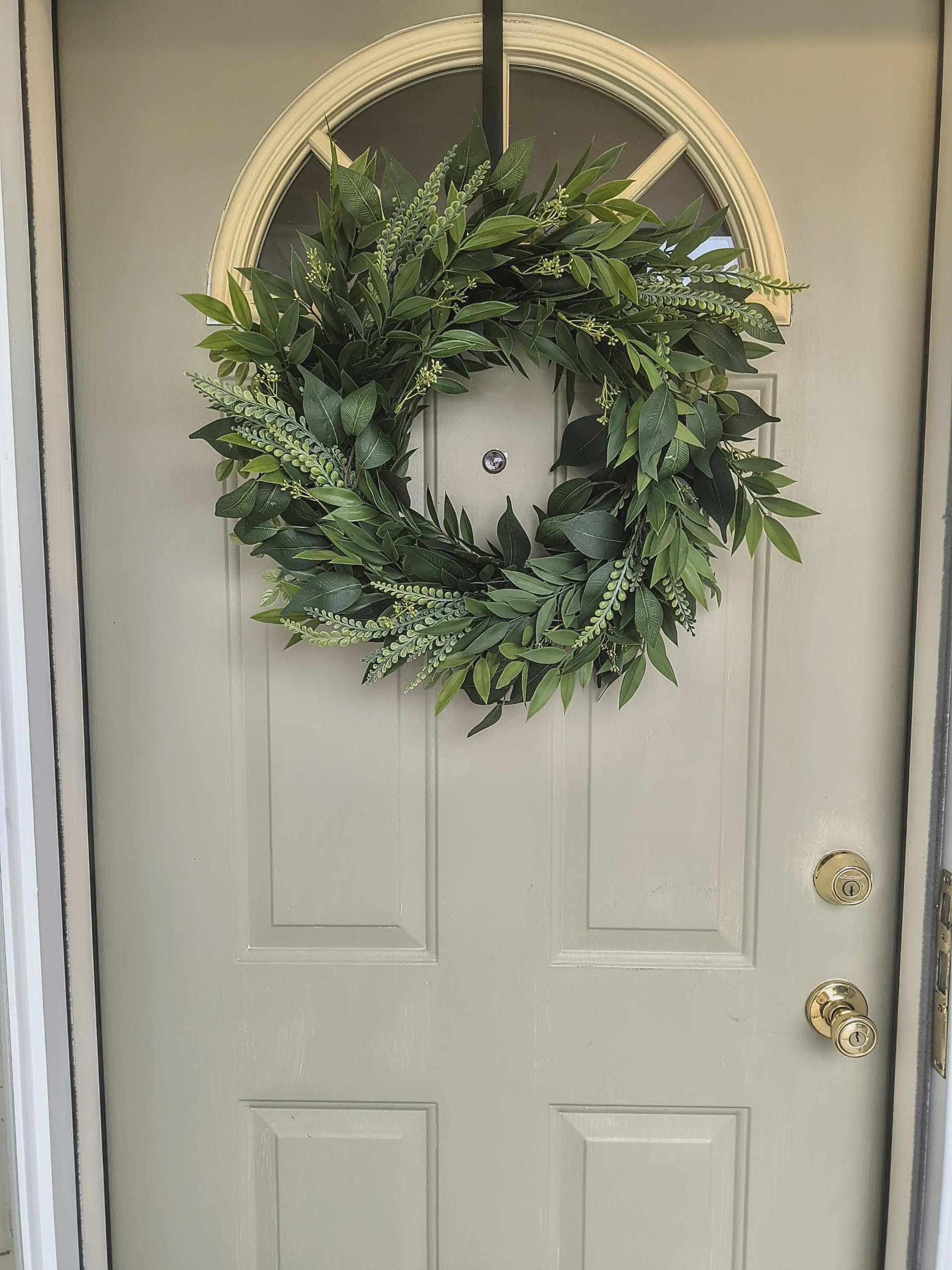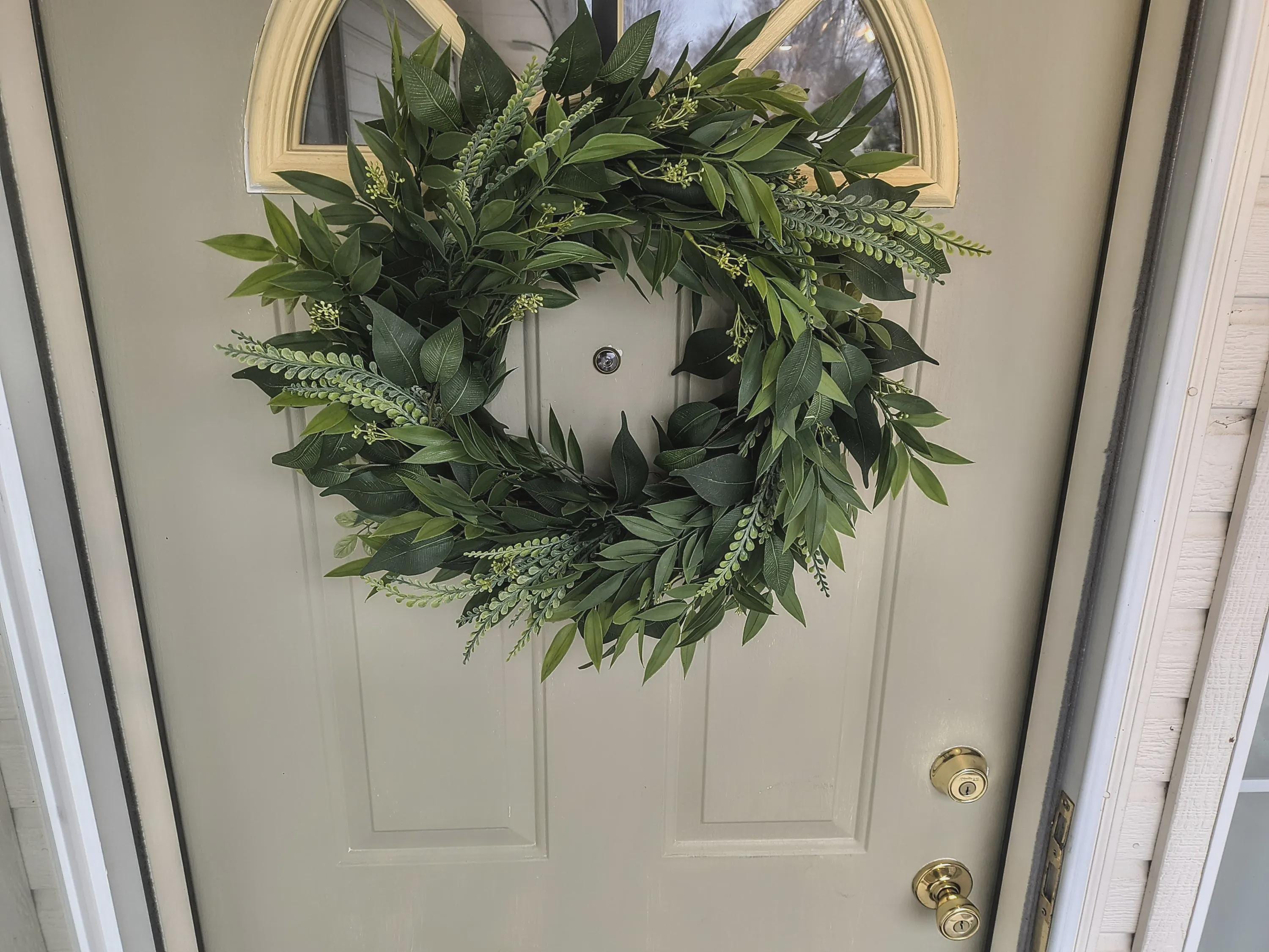 Bring timeless elegance to your front door with this handcrafted faux greenery wreath, designed for year-round beauty