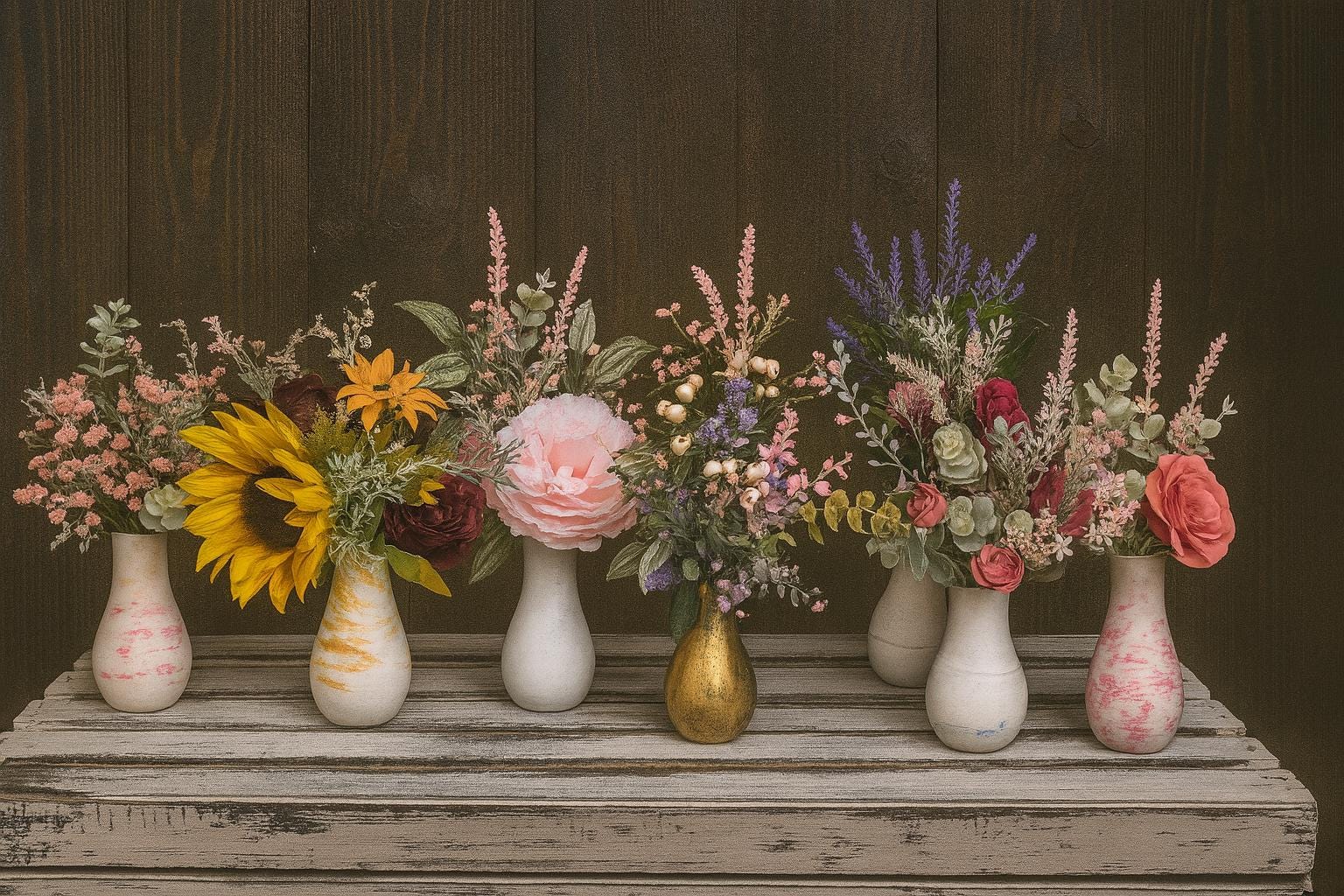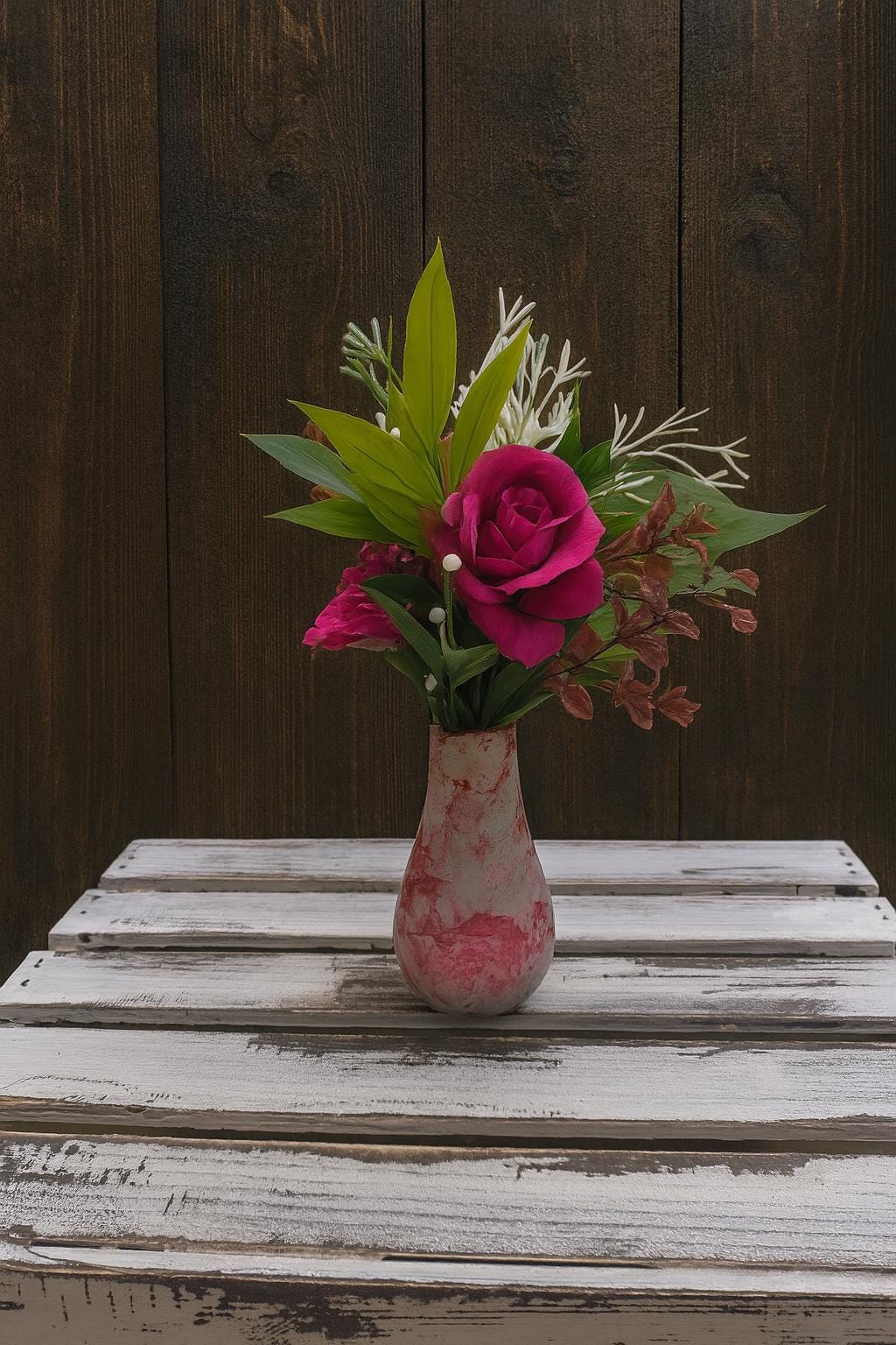 Bring rustic charm and floral elegance into your home with these handmade concrete vases, each filled with beautiful faux floral arrangements. Every vase is uniquely crafted and poured by hand, offering a one-of-a-kind marbled texture or finish. No watering required—just timeless beauty.