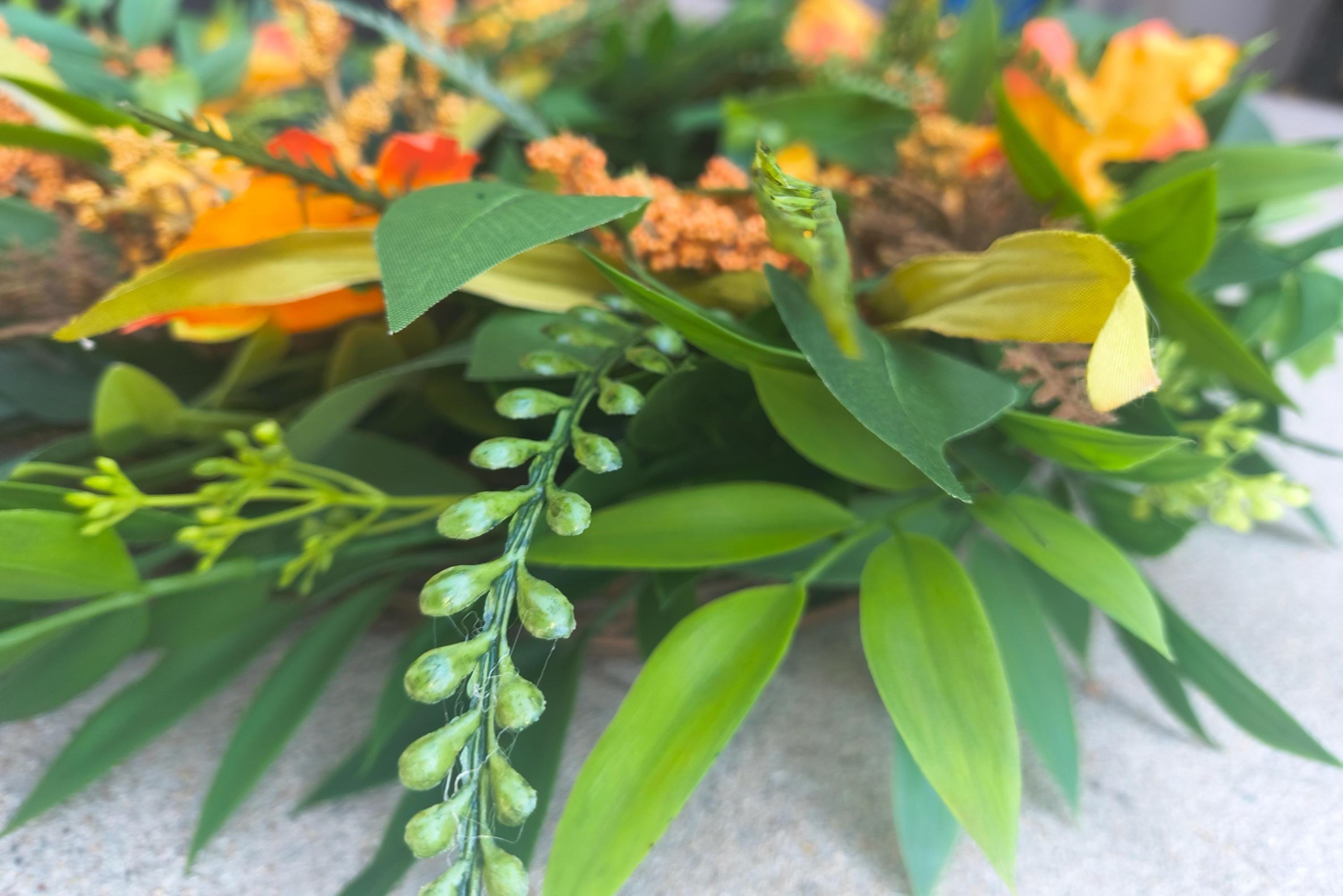 Realistic Greenery β Full of lifelike leaves, wheat sprays, and textured stems for a natural harvest look.