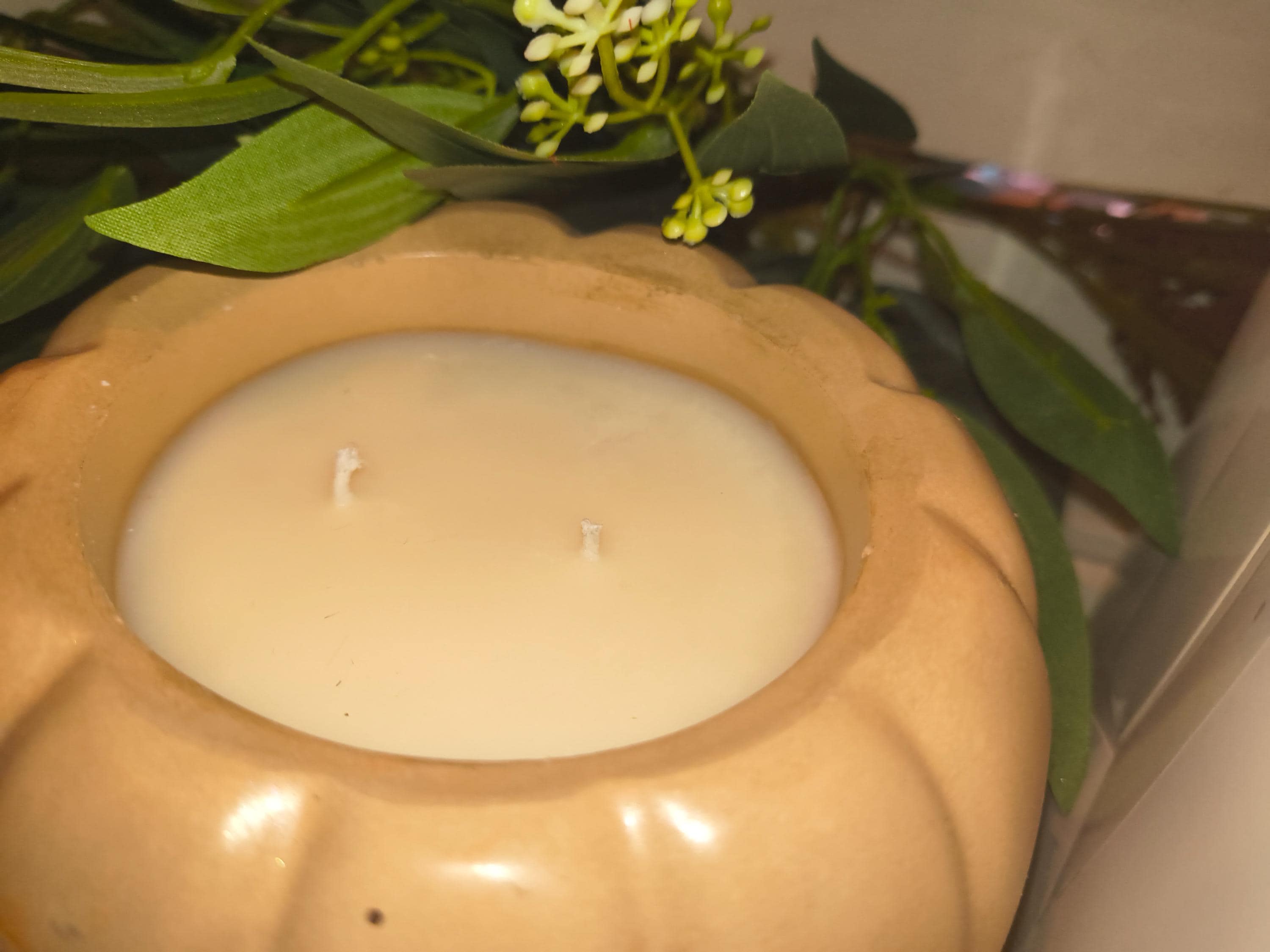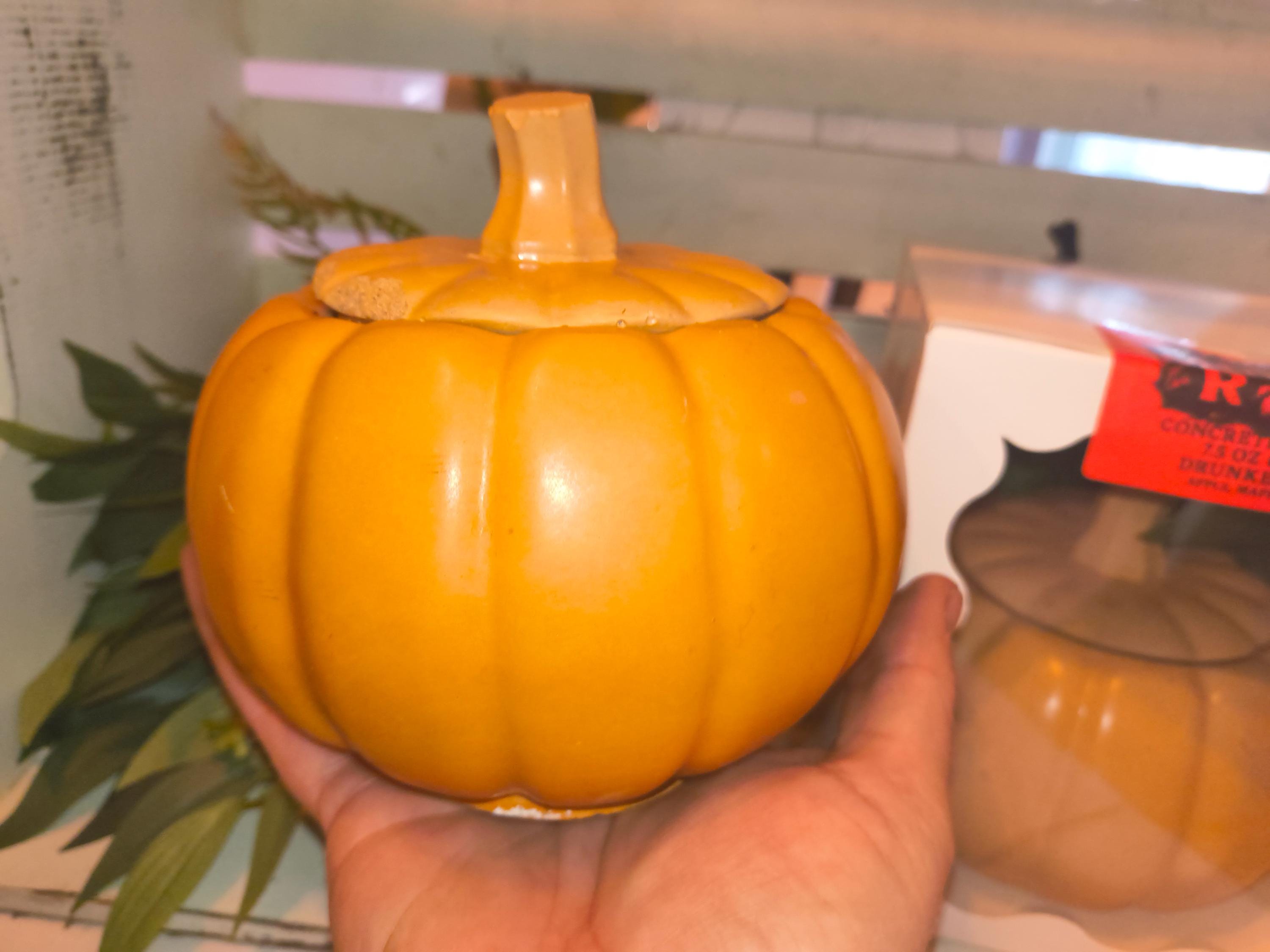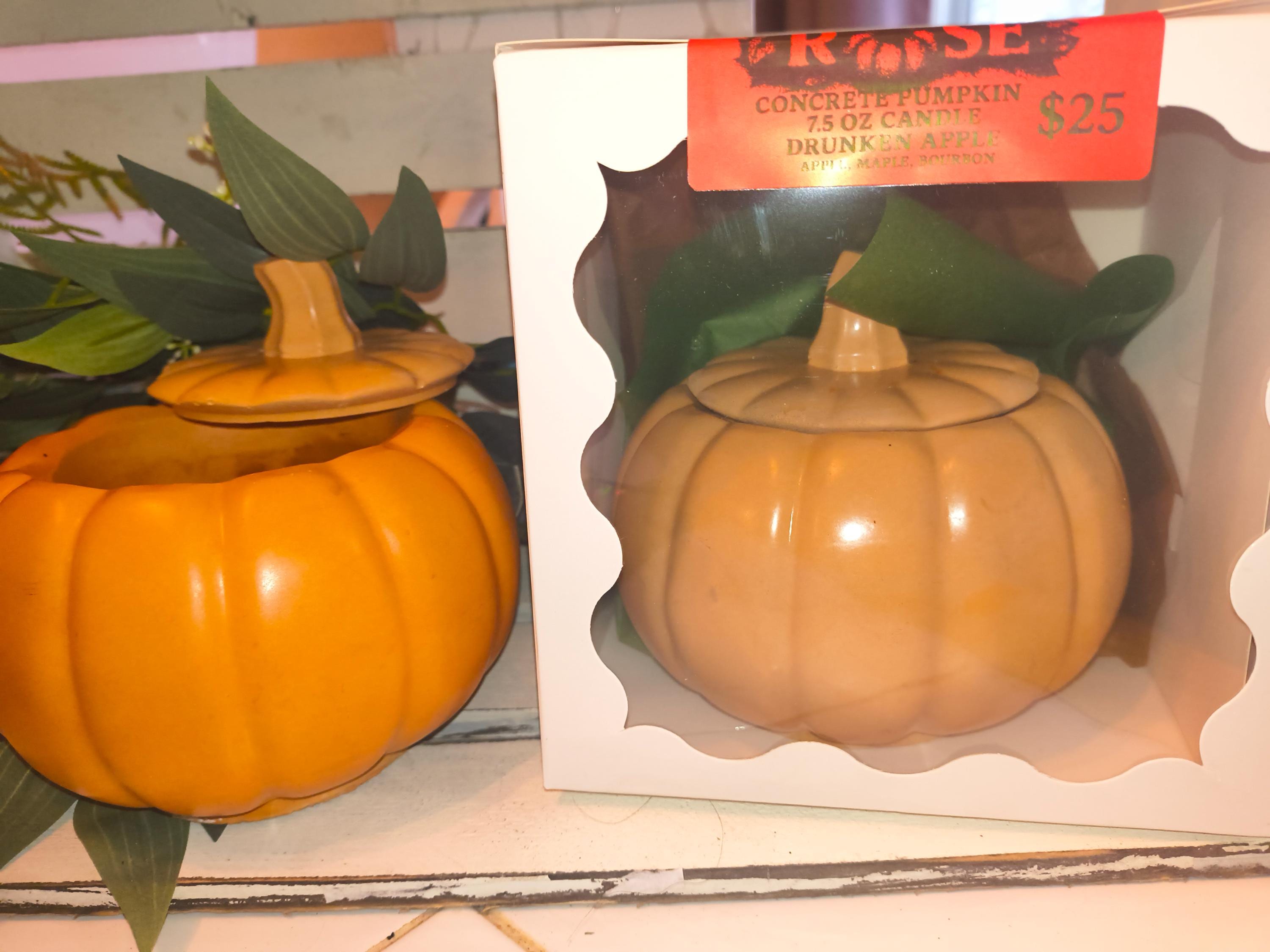 Large handmade concrete pumpkin candle