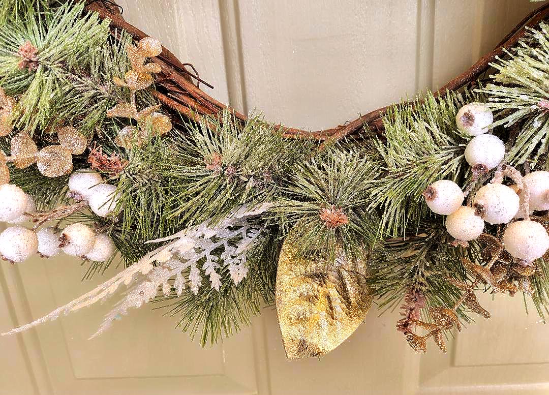 It is a perfect wreath for those of us that want just a little touch of sparkle but also something that can be used all winter.