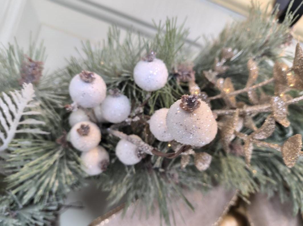 • Faux Pine, Berries, Magnolia leaves fern, and soft filler greenery