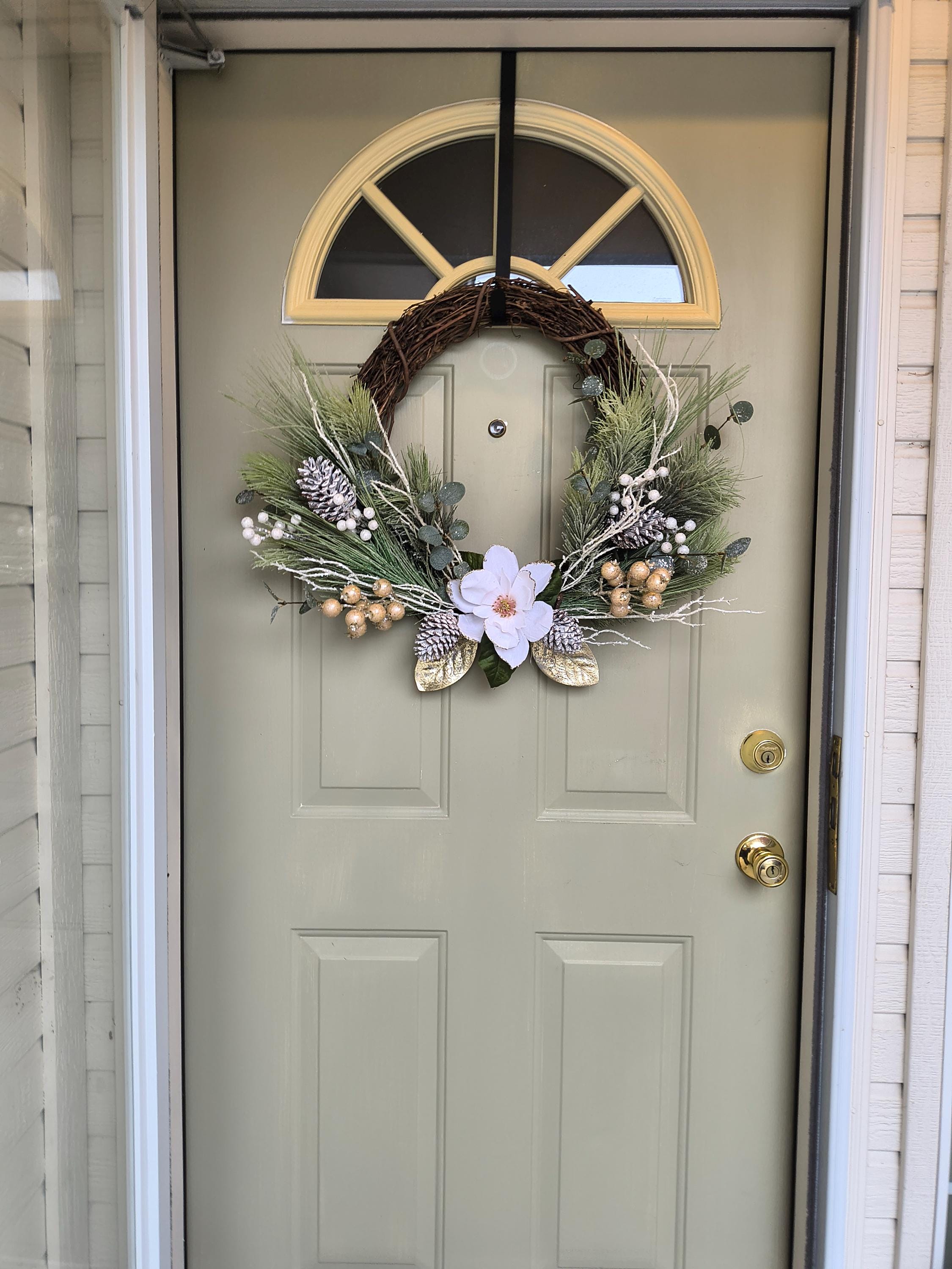 Each wreath is one-of-a-kind with unique greenery placement for a handmade feel.