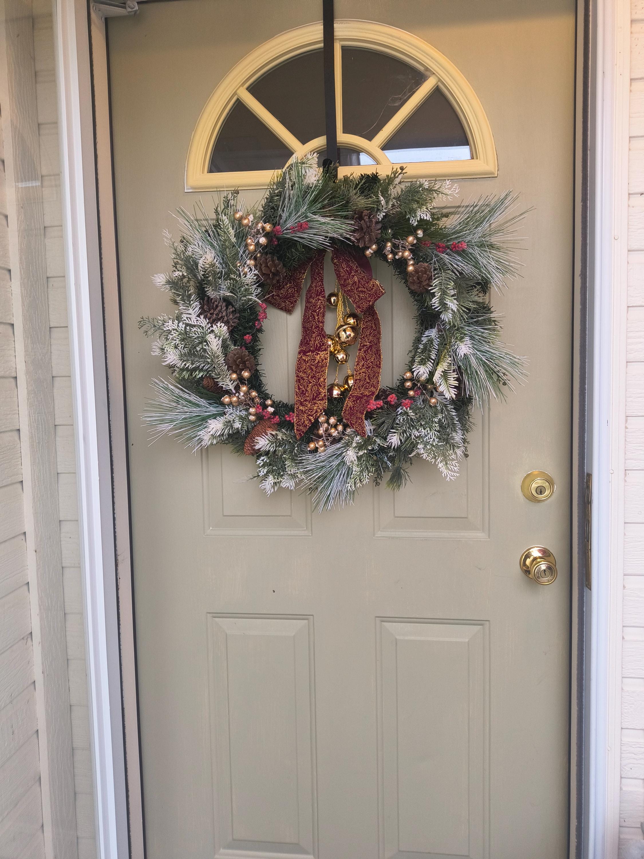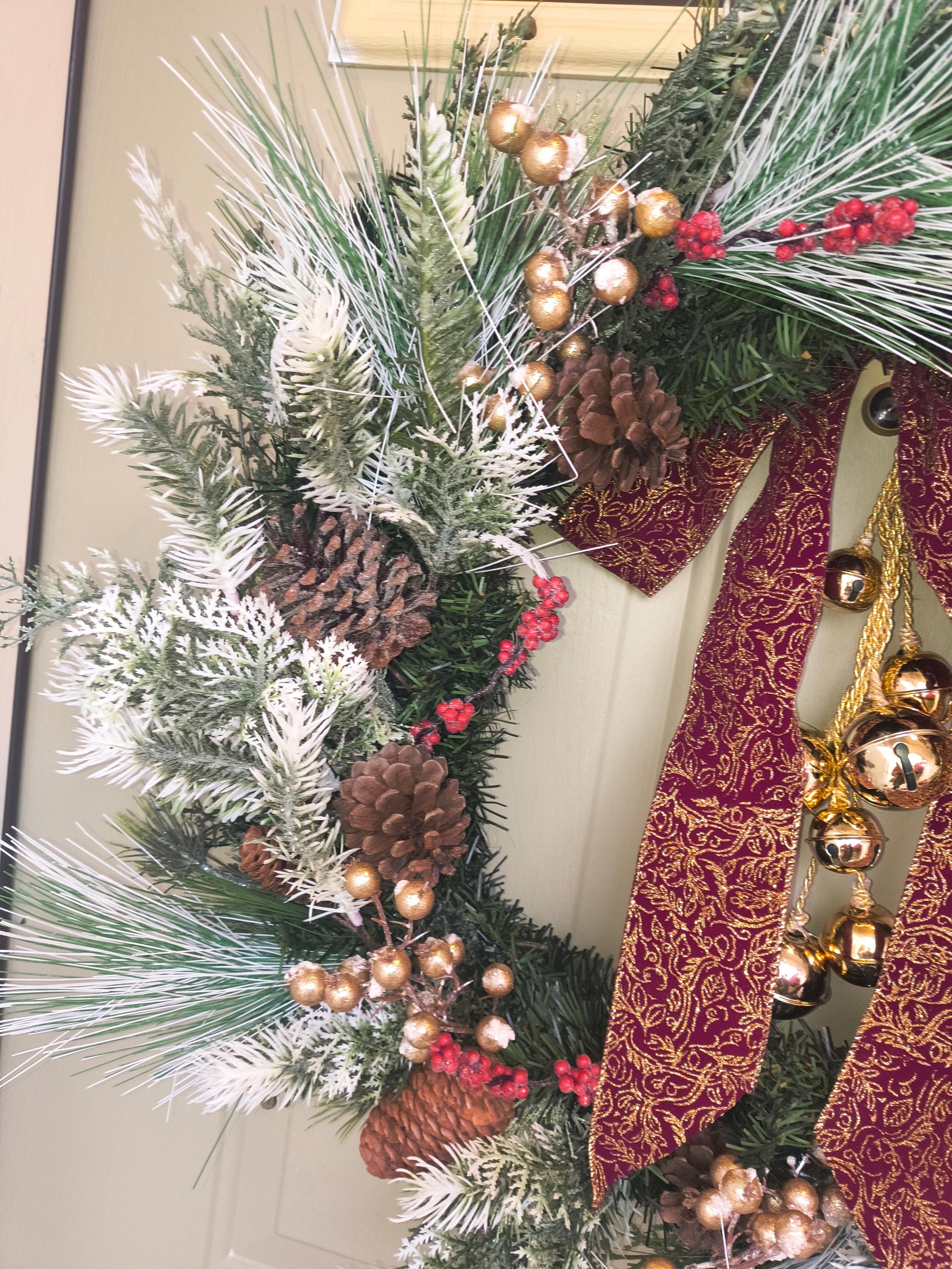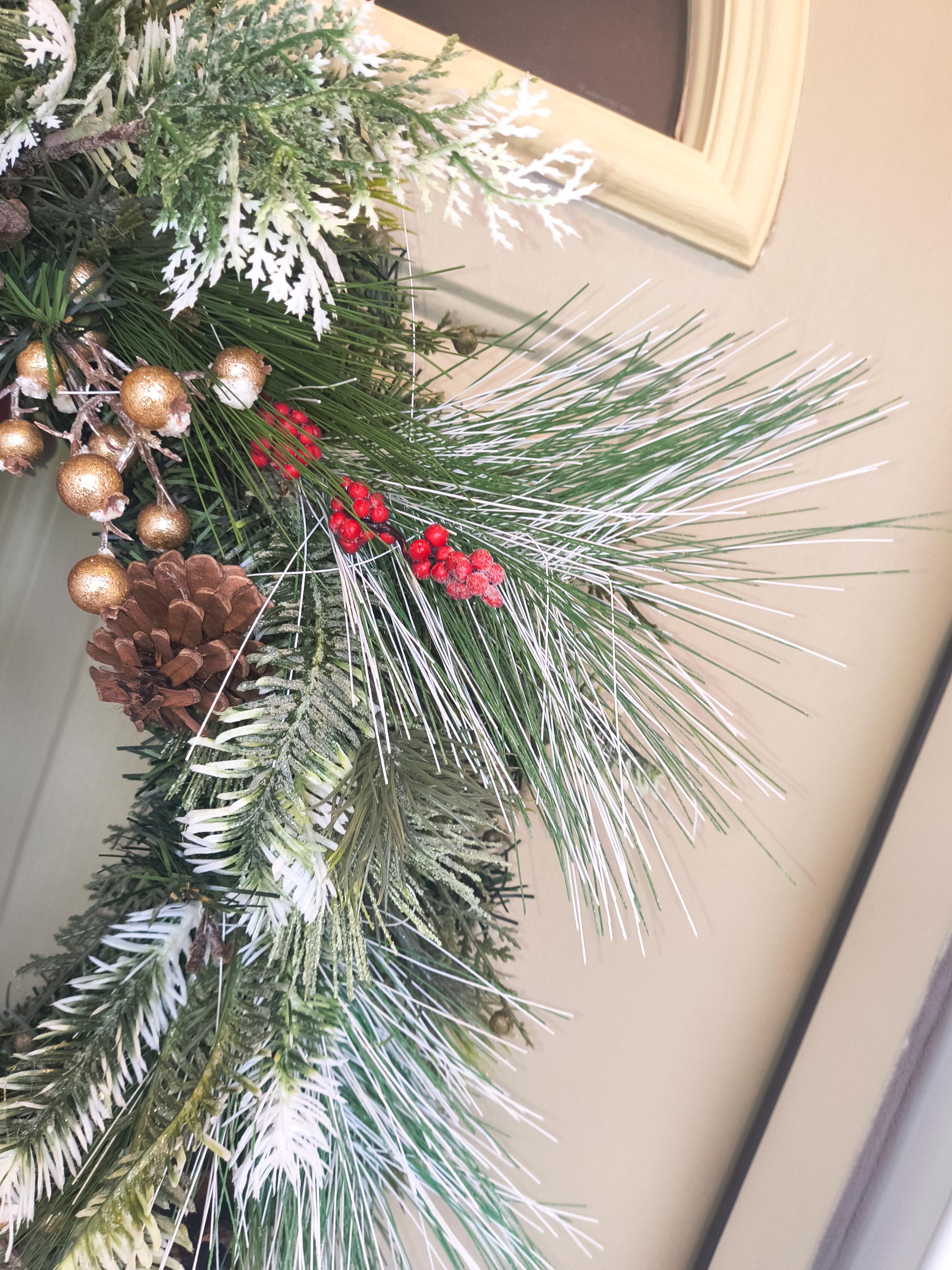 It is a perfect wreath for those of us that want just a little touch of sparkle but also something that can be used all winter.